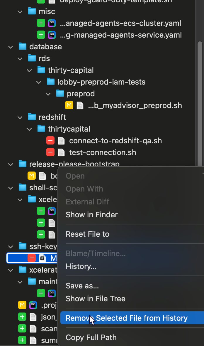 Now you can simply right click on the offending file and remove its entire history (remember to ignore the file so it doesn’t get committed again).